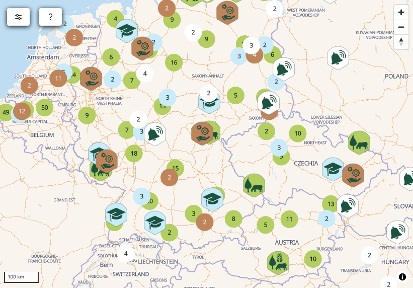 Die interaktive "Agroforestry Map of Europe" vereint Beispiele für Agroforstwirtschaft aus ganz Europa. Landwirt*innen, Organisationen und andere Interessierte können ihre Systeme registrieren und präsentieren. Durch eine standardisierte Struktur werden Agroforstsysteme europaweit vergleichbar – ein wichtiger Schritt für Wissenstransfer, Peer-to-Peer-Learning und fundierte Entscheidungen.