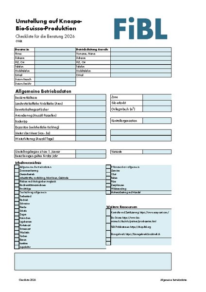 Die Checkliste dient als Instrument zur Übersicht in der Umstellungsberatung. Sie enthält alle umstellungsrelevanten Punkte und verlinkt auf weitere für Umstellungsbetriebe relevante Ressourcen.