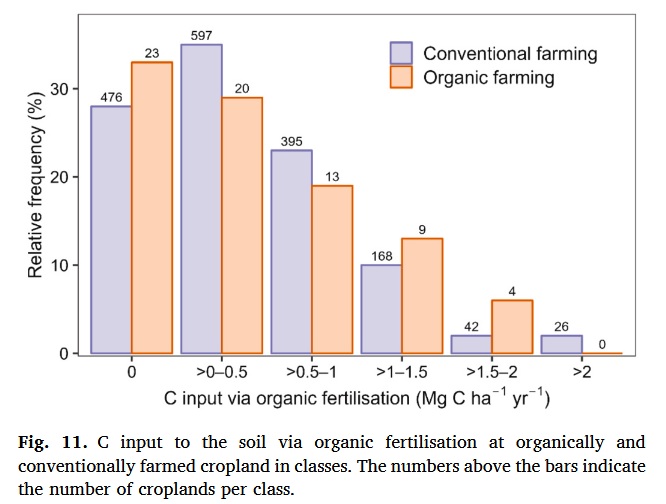 Im Rahmen der deutschen Bodenzustandserhebung (BZE) ist von Don et. al. eine Studie des Thünen-Instituts publiziert worden, die Bodenproben von über 2000 konventionellen und 100 biologisch bewirtschafteten Betrieben untersucht hat. Dabei zeigte sich, dass es auf Ackerflächen von deutschen Biobetrieben keinen nachweisbar erhöhten Kohlenstoffgehalt im Boden gibt.