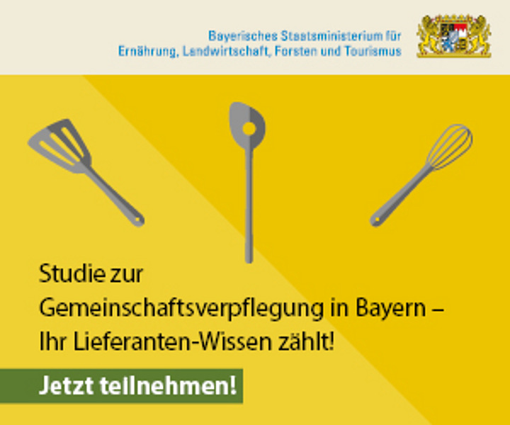 Wie hoch ist der tatsächliche Anteil regionaler, konventioneller und bio-zertifizierter Lebensmittel in der bayerischen Gemeinschaftsverpflegung (GV)? Dies und weitere Fragen sollen im zweiten Teil der Strukturanalyse durch die Expertise von Lieferant*innen der bayerischen GV geklärt werden. Teilnehmen können alle Unternehmen, die GV-Einrichtungen in Bayern beliefern: Großhändler, Handelsunternehmen, landwirtschaftliche Betriebe, Erzeugergemeinschaften, Metzgereien, Molkereien und verarbeitende Betriebe wie Unternehmen der Gemüsevorverarbeitung.