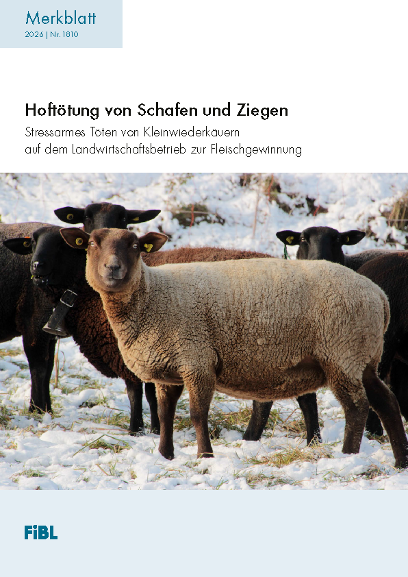 Das neue Merkblatt des FiBL vermittelt rechtliche Grundlagen, beschreibt den Ablauf der Hoftötung und gibt konkrete Hinweise für eine tiergerechte Durchführung. Es enthält Informationen zur Vorbereitung der Tiere, zur Gestaltung der Tötebucht, zur fachgerechten Betäubung und Entblutung und zum Transport unter hygienischen Bedingungen. Checklisten, Tipps aus der Praxis und anschauliche Abbildungen unterstützen die Umsetzung auf dem eigenen Hof.