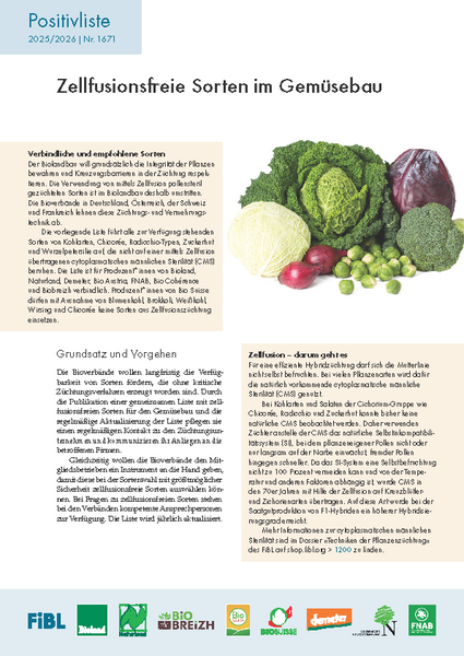 fibl.org: Liste/Verzeichnis "Zellfusionsfreie Sorten im Gemüsebau"