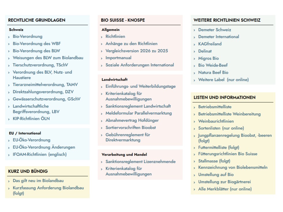 Die aktuellsten Richtlinien der Biolabel und die für den Biolandbau relevanten Gesetzestexte für 2026 sind bereits vollständig im Bioregelwerk verlinkt.