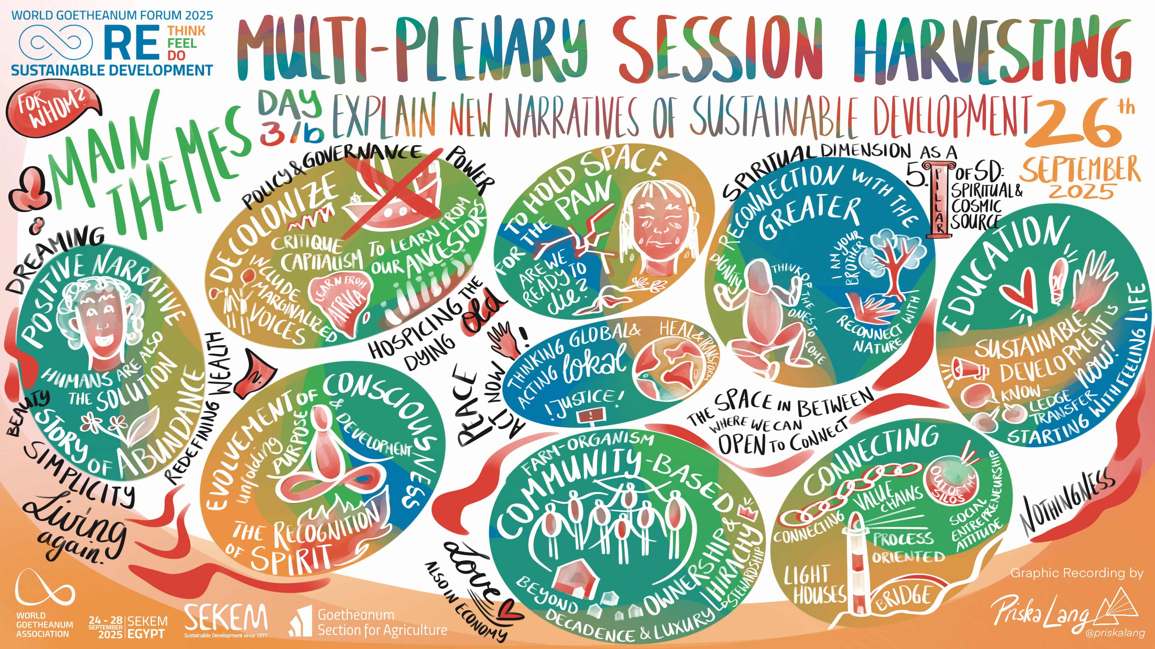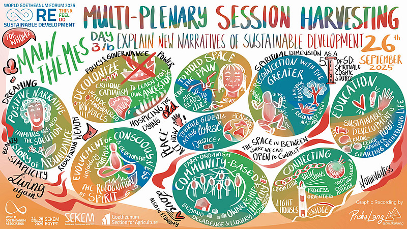 With these words in mind, the main conference "Re-Think, Re-Feel, and Re-Do Sustainable Development" began. Here, the concepts and practices of sustainable development were collectively reflected upon and re-envisioned. The World Goetheanum Association, Sekem, and nine partner organisations – including the Club of Rome, the World Future Council, the Eosta & Robin Food Coalition, the World Ethic Forum, the Biodynamic Federation Demeter International, NaturaSi, the Egyptian Biodynamic Association, the Economy of Love Association, the Heliopolis University, and FiBL – joined forces to make this initiative a reality.