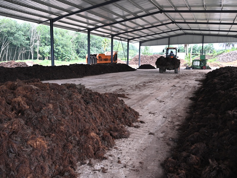Palm oil production generates significant volumes of waste, including empty fruit bunches (EFBs) and palm oil mill effluent (POME). Both residues can cause severe environmental contamination if not properly managed. Given that soils in tropical contexts are often poor in both structure and nutrient content, producing compost from industrial organic waste to supplement natural biomass inputs is a crucial practice for enhancing soil fertility, plant health, and crop yields.